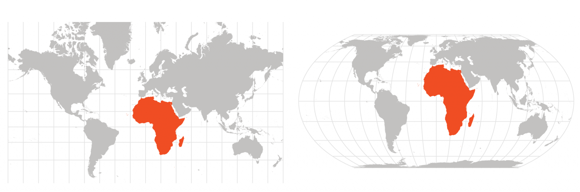 África es aproximadamente tres veces más grande que Europa. Sin embargo, uno no se daría cuenta de esto al mirar el mapa más popular del mundo, el mapa de Mercator del siglo XVI.